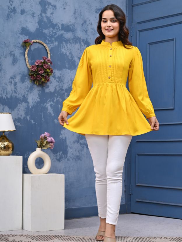 Upgrade your style with this mustard yellow tunic top—an outfit that blends tradition with modern chic, making it suitable for women of all ages. A wardrobe staple that guarantees elegance, comfort, and versatility every time you wear it.